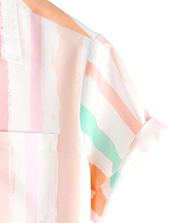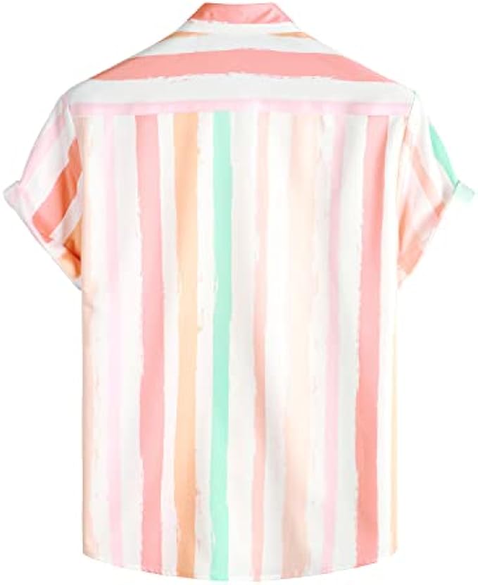 Features: classic stripes, short sleeves, button down, print and Hawaiian style combined