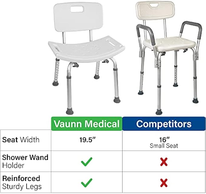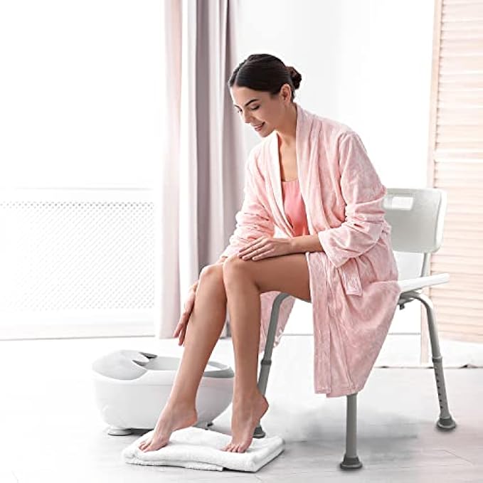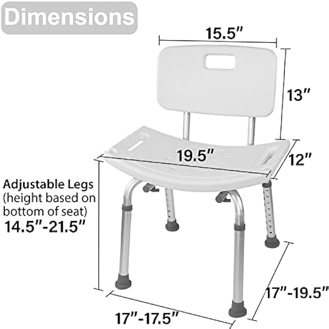 DURABLE & SECURE – NEW model shower chair is now made with heavy-duty anodized aluminum frame with a weight capacity of 300lbs. The user manual printout shows a 250lbs max weight capacity. Product has been updated in 2022 to 300lbs. Aluminum frame is lightweight, durable and sturdy. Its unique angled legs with non-skid rubber tips allow users’ weight to be distributed over a larger area making the shower chair ultra-safe and stable.