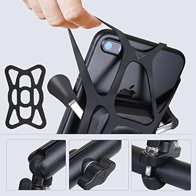 venshun Motorcycle Phone Holder Aluminum Alloy Material Sturdy and Durable Two U-Bolt Base 360°Rotating Suitable for All Phones Motorcycle Bike Handlebar Phone Mount