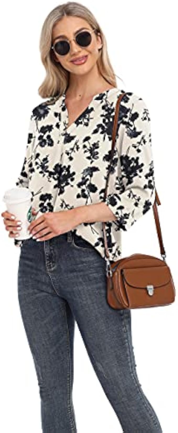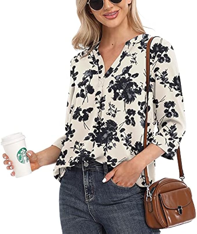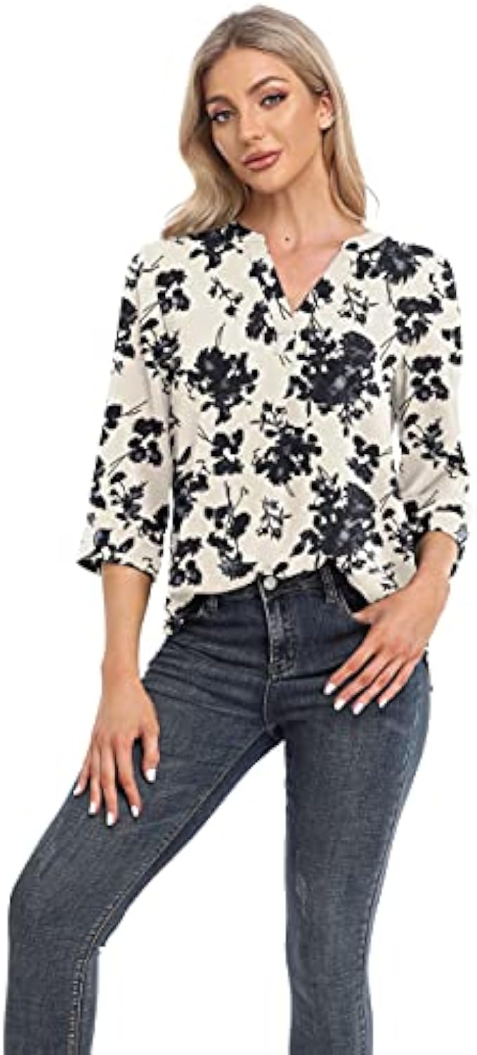 Design:The womens blouse features with slightly loose version,v neck,3/4sleeve,chiffon fabric.Makes you look slim and capable, simple and generous without losing the maturity and sexy that you should have