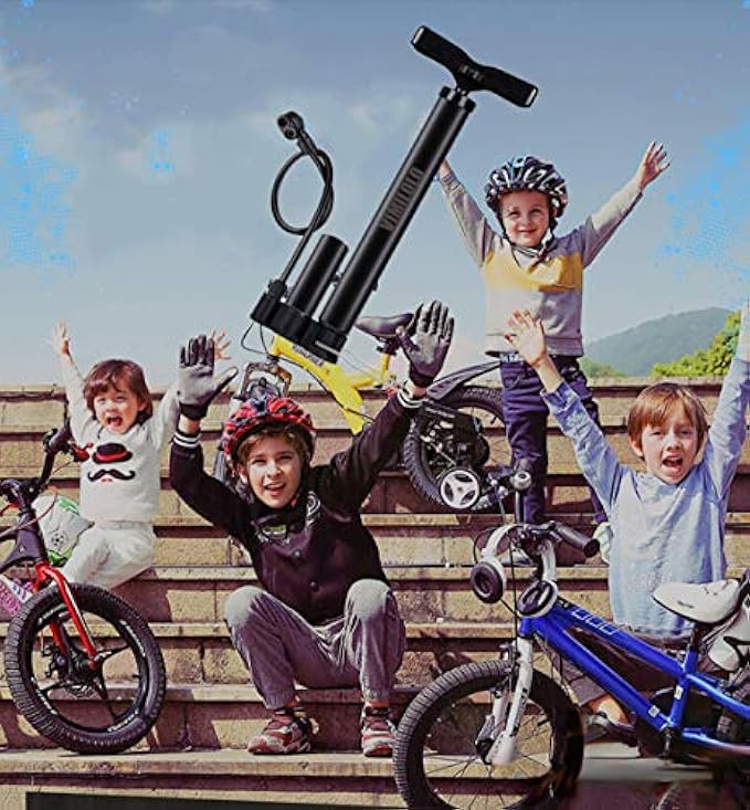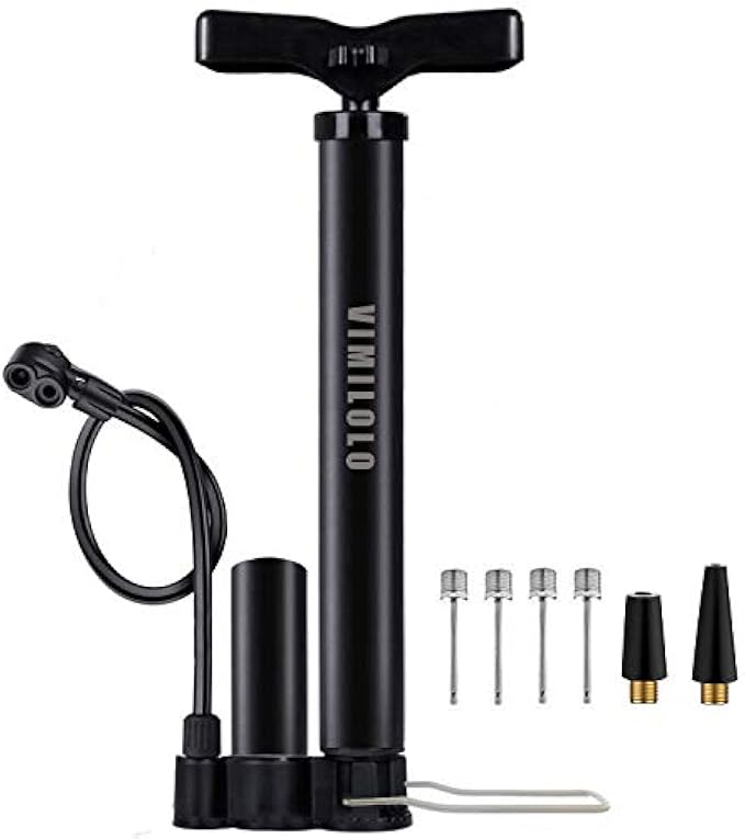 VIMILOLO Bike Pump Portable, Ball Pump Inflator Bicycle Floor Pump with high Pressure Buffer Easiest use with Both Presta and Schrader Bicycle Pump Valves-160Psi Max