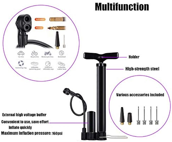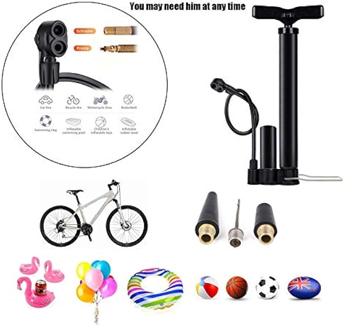 For Presta and Schrader Valves :the tire pump can inflate for bicycles, electric vehicles, motorcycles, Car, sports balls and swimming rings.