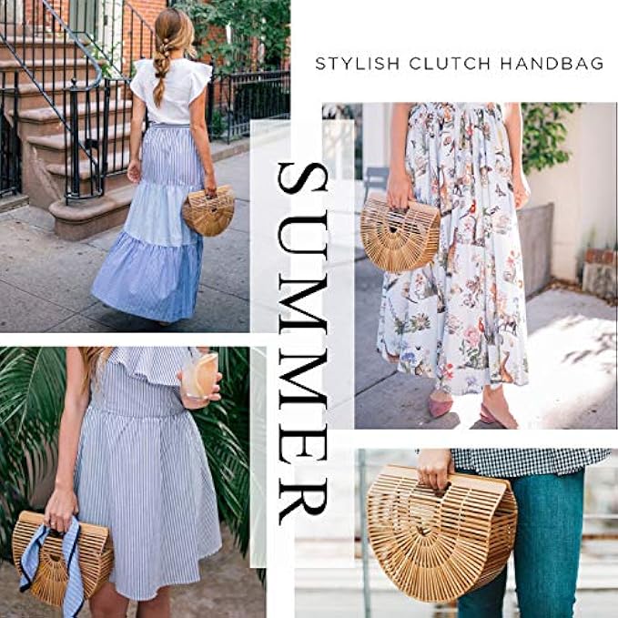Cute Summer Straw Bags for Women--Vintga summer beach bags feature 100% natural bamboo, sturdy and eye-catching.