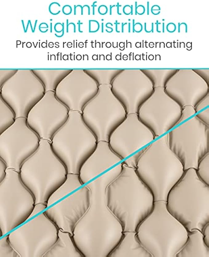 ADVANCED WAVE-LIKE THERAPY WITH 130 AIR CELLS: Our proprietary algorithm alternately inflates and deflates each of the pad’s 130 air cells, creating a mattress surface that evenly distributes a patient or loved one’s weight and instantly eliminates pressure spots. Each air cell is heat sealed to ensure it will not leak for exceptional durability.