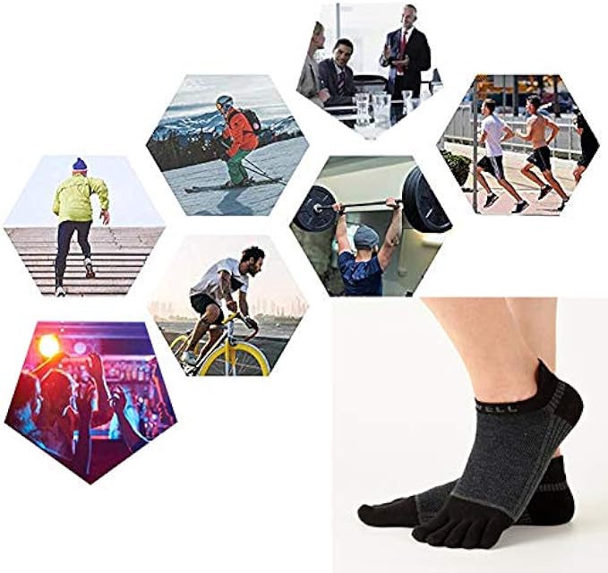【Advanced Design】: Covered Non-slip stripes on the bottom, will hold your stability.Lightweight style running toe socks allows toes to relax and contract freely