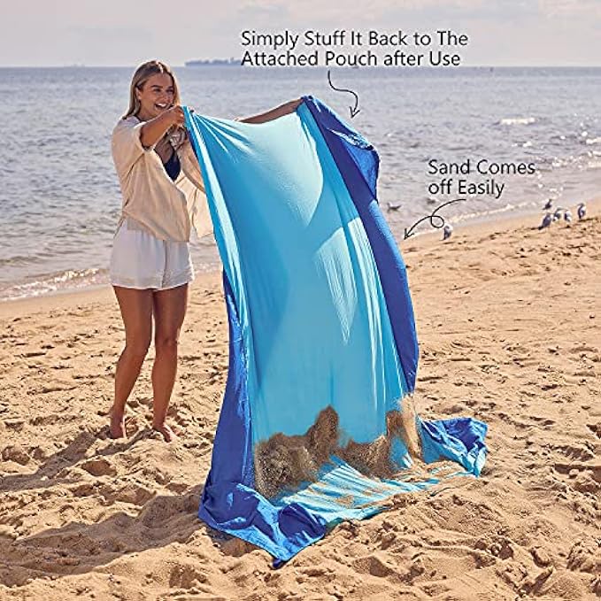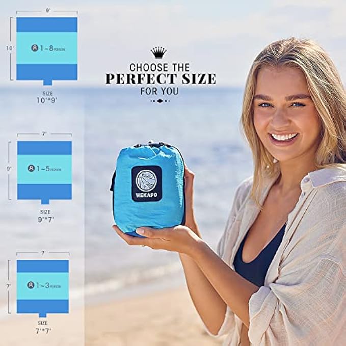 ✔ SIMPLE DESIGN & DOUBLE ANCHORED-WEKAPO blanket is designed as simple as possible so it has eliminated 5 sticking out sand pockets and added 4 corner pockets that can be used for storage or sand anchor. If it's windy day, it can be nailed down on beach by metal stakes coming with our blanket.