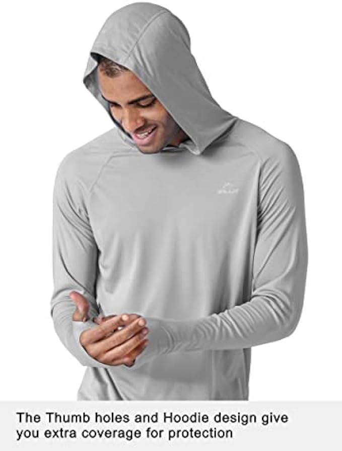STYLISH DESIGN: This sun shirt features hoodie design preventing your neck form sunburn in the sun. The thumb holes keep the sleeves in place and give extra coverage for sun protection
