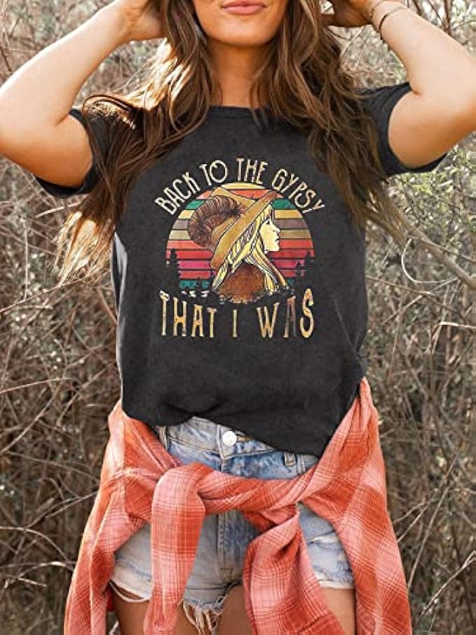Women Character Vintage T Shirt Back to The Gypsy That I was Graphic Rock Music Tees Tops