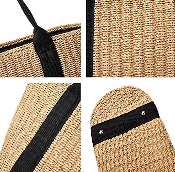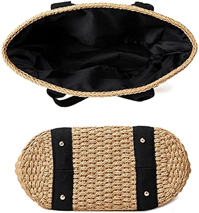 Unique and Classic design: The cute tote straw beach bag is casual style, lightweight and soft. Perfect for summer travel, beach party. With soft fabric lining. Keeps your belongings safe, day after day.