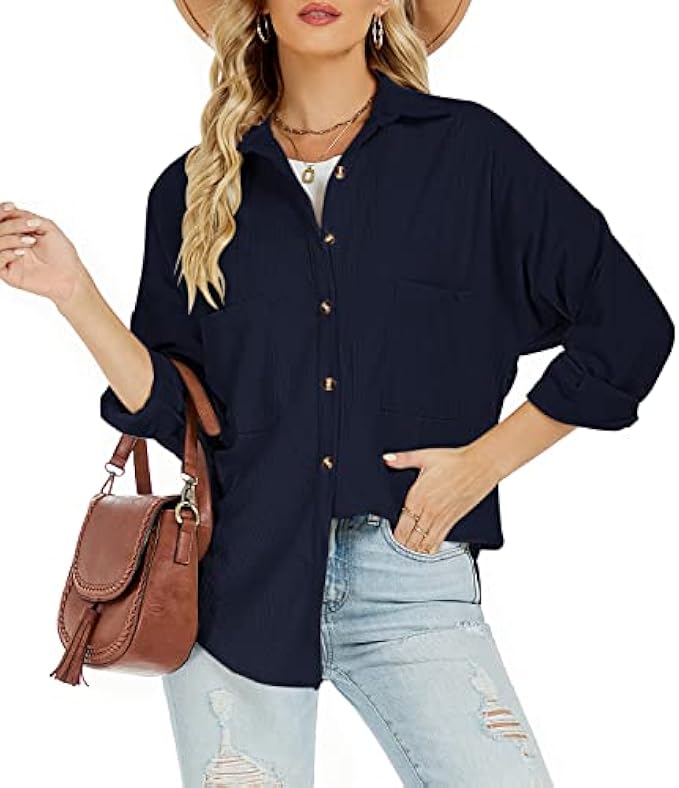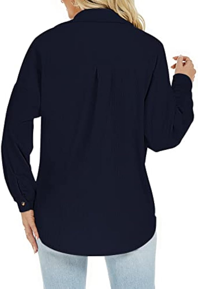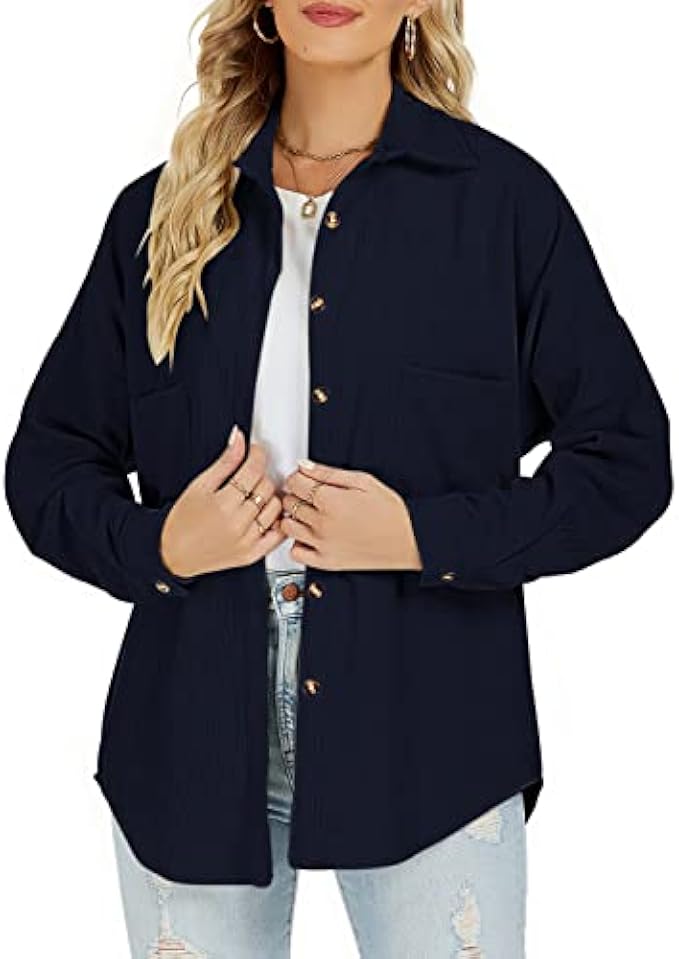 Womens Corduroy Shirts Shacket Casua Long Sleeve Button Down Blouses Jacket Top with Pockets