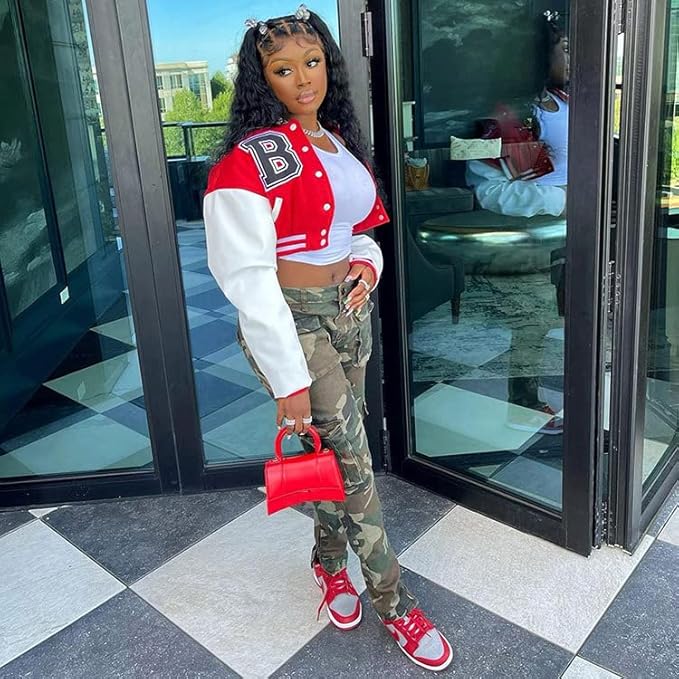• Material: This patchwork crop varsity jacket made of polyester, and this lightweight jacket women also soft to touch and comfortable to wear.
