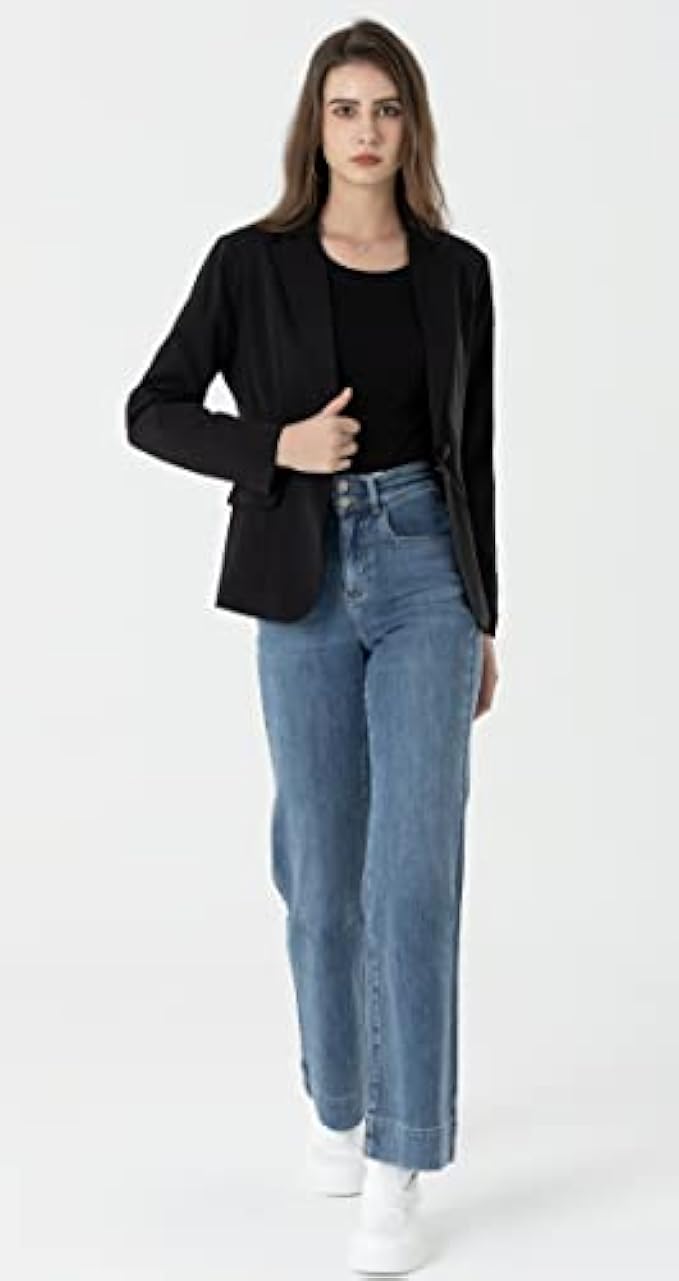 Womens One Button Blazer Lightweight Office Work Suit Jacket