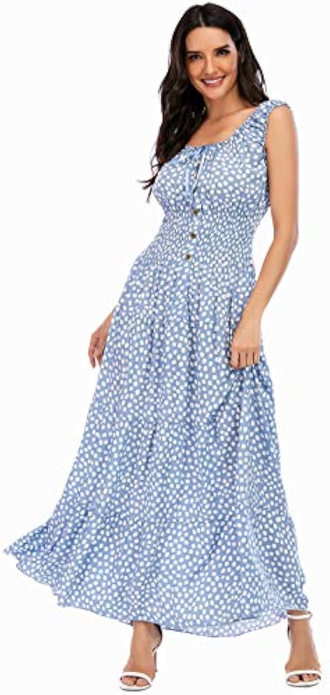 Women’s Sleeveless Summer Flowy Printed Boho Maxi Long Dress Dresses for Wedding Guest