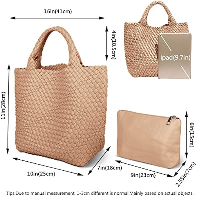 Leather Imported Leather lining Zipper closure 【Vegan Leather Material】- This stylish handbag is crafted from high-quality vegan leather, which is incredibly soft to the touch and easy to clean. The intricate interlaced pattern gives the bag an admirable appearance, while the delicate woven detailing running throughout the frame adds to its overall beauty. This eco-friendly material is good for the environment and ensures that no animals are harmed in the process. 【Convenient Design】- This Woven Hobo Bag is perfect for those who want a bag that can be used for multiple purposes. It can be used as a tote, handbag, or shoulder bag. (the armhole may not be big enough to wear as a shoulder bag.)The bag comes with a small purse inside, making it the perfect choice for those who want a stylish and practical accessory. Its large size can accommodate all your daily necessities, just get it today. 【Versatile and Multipurpose】- This Vegan Leather Tote is not only fashionable but also practical. With a size of 11*10*7 inches and the armhole height of 4 inches, it is spacious enough to hold a 9.7-inch tablet, newspaper, books, keys, cosmetics, and more. You can take it to work, dining at restaurants, watching movies, traveling, shopping, going on vacation, and even use it as a vegetable basket. 【Go with Any Styles】- This stylish handbag will raise the level of your clothing game, thanks to its fashion-forward design that looks like the bags that fashion bloggers or writers would wear during fashion week. It is the perfect carry-all for every day, with its eye-catching design and matching wristlet, making it ideal for every occasion. Its sturdy shoulder straps ensure extra comfort and style. Easily match to most outfits style. 【Exceptional Customer Service】 At our company, we take pride in delivering not just high-quality bags but also exceptional customer service. We understand the importance of a positive shopping experience, and we go the extra mile to ensure that our customers are completely satisfied with our products and services. If you have any questions or concerns, please don't hesitate to contact us, and we'll do everything we can to assist you.