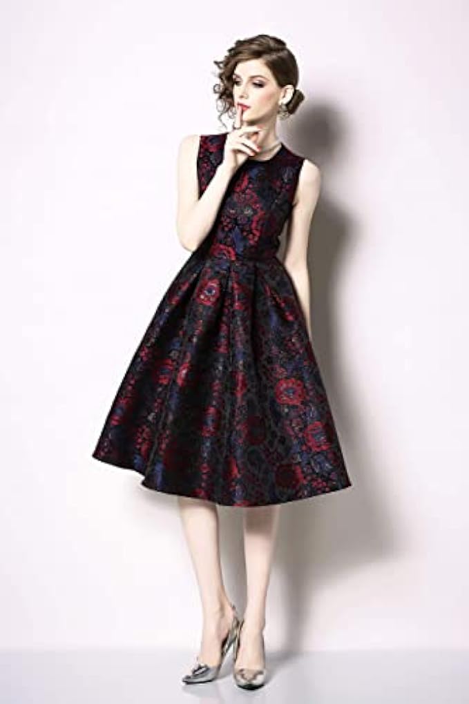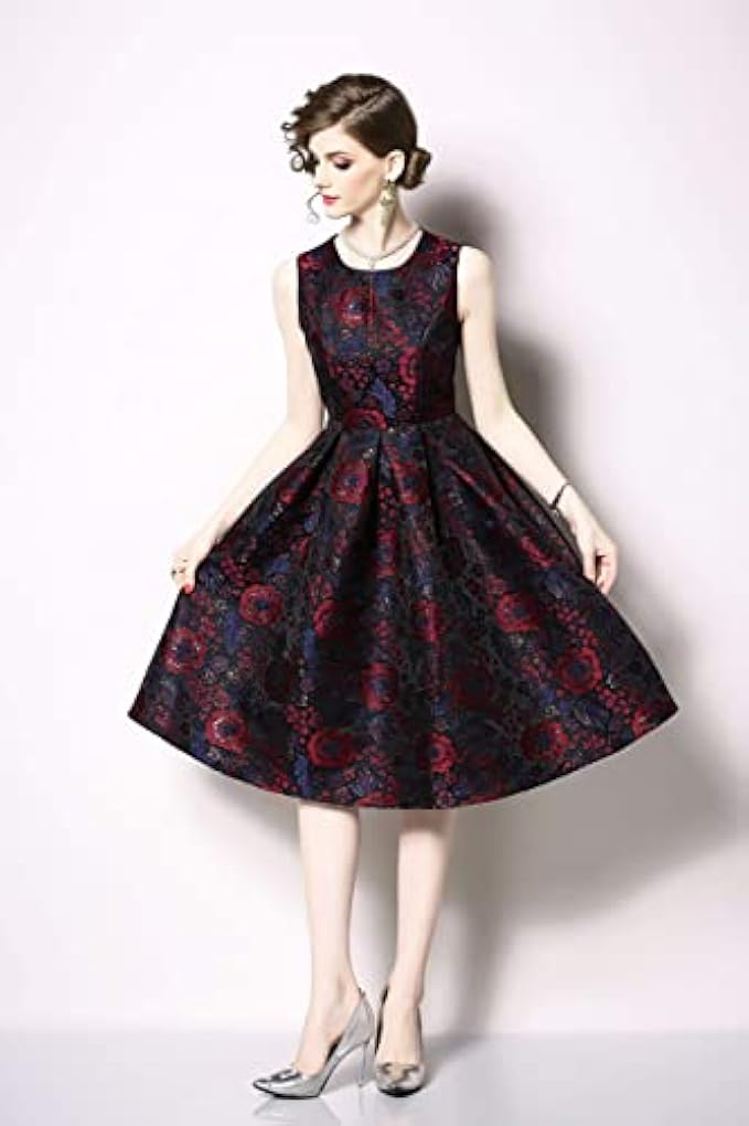 Women's Vintage Tea Dress Sleeveless 1950's Floral Garden Rockabilly Swing Prom Cocktail Party Dress