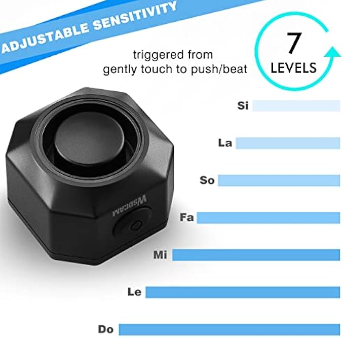 ADJUSTABLE VOLUME & ADJUSTBALE SENSITIVITY - Up to 110dB LOUD alarm, scare off potential thieves effectively and give you good peace of mind. Well-made bike alarm with great performance. 3 levels adjustable volume, don’t worry about the alarm is extremely loud or not loud. 7 levels adjustable sensitivity from gently touch to push or beat, easy to set it as your need