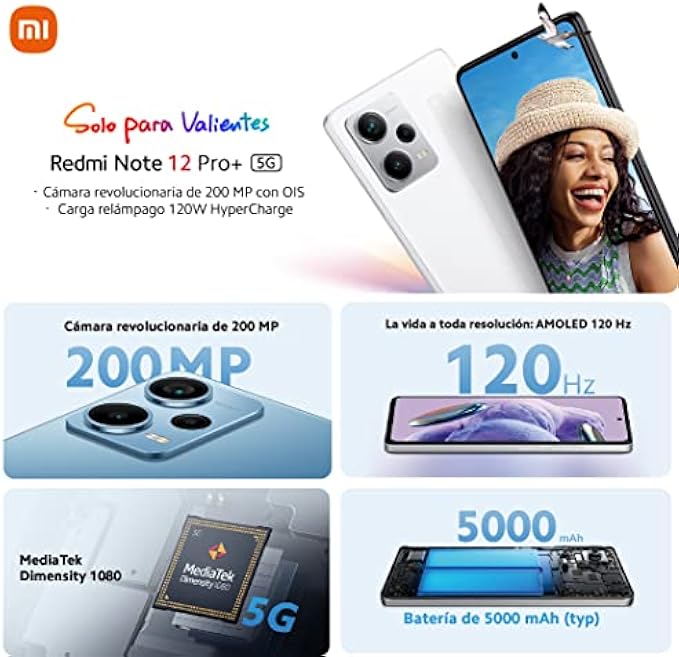 Xiaomi Redmi Note 12 Pro+ Plus 5G + 4G (256GB + 8GB) Factory Unlocked 6.67" 200MP Triple Camera (Tmobile Tello Mint USA Market Global) + Extra (w/Fast Car Charger Bundle) (Polar White (Global))