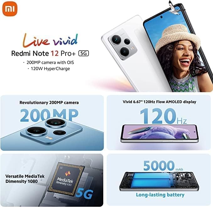 Xiaomi Redmi Note 12 Pro+ Plus 5G (256GB + 8GB) Factory Unlocked 6.67" 200MP Triple Camera (Only Tmobile Tello Mint USA Market) + Extra (w/Fast Car Charger Bundle) (Midnight Black (Global))