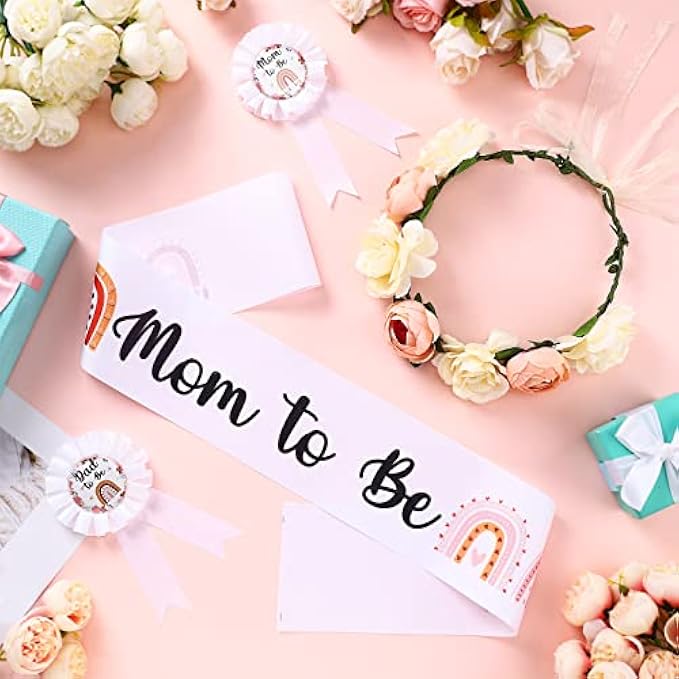 Wide Range of Application: this mom to be sash floral crown kit is ideal for mothers and fathers to wear in baby shower; It is ideal for baby shower photo props, souvenirs, gifts, and so on
