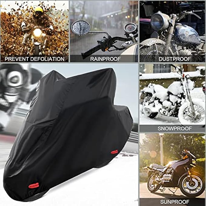 XYZCTEM Motorcycle Cover -Waterproof Outdoor Storage Bag,Made of Heavy Duty Material, Fits up to 97" Harley Davison and All Motors(Black& Lockholes& Professional Windproof Strap)