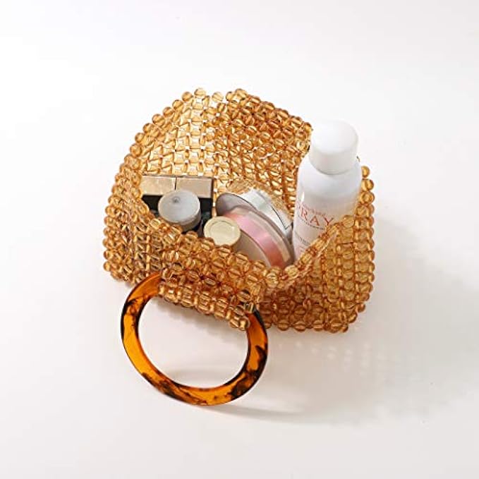 YIFEI Women Colored Transparent Beaded Acrylic Handbag Evening Handmade Bags for Wedding Party (Brown)