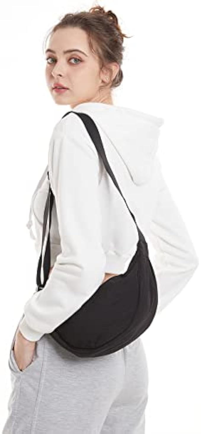 TRENDY CRESCENT SHAPED: This causal crossbody sling bag is designed as a minimalist half-moon with roomy space, perfect for any occasion, daily use, school, travel, work,etc.