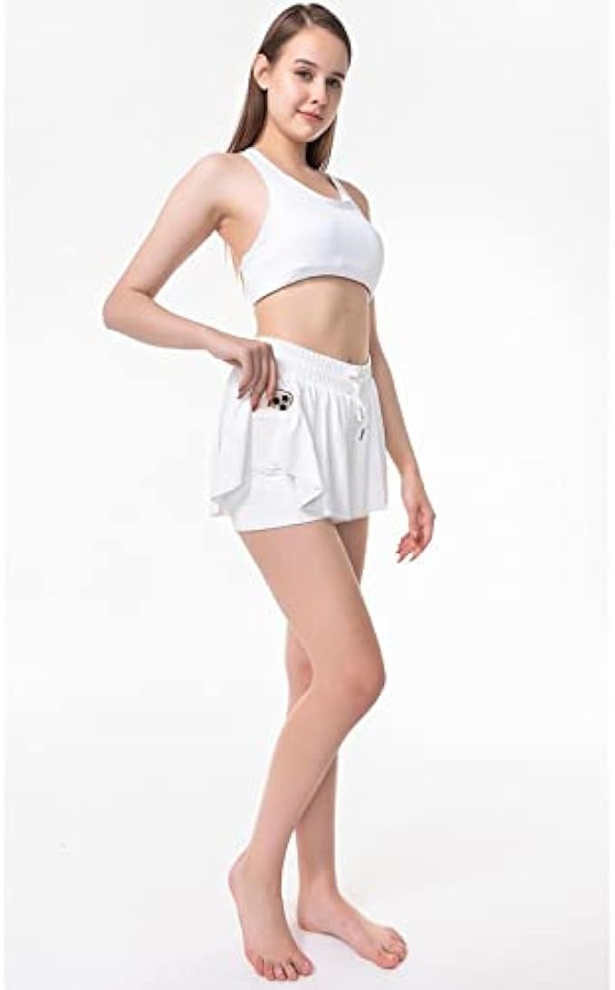 86% Nylon, 14% Spandex Imported Drawstring closure Hand wash/machine wash 2-in-1 Double Layer Design: flowy running shorts with pockets It has stretchy spandex-ish underwear liner but also have the outer layer with an opening hems design, that does gives you more privacy and security. Soft Comfy Material: flowy shorts for women is made from high-quality 86%Nylon, 14%Spandex fabric, which is highly elastic, soft,sweat-wicking to keep you cool and fresh all day. Pockets and Elastic Drawstring Waistband: flowy shorts have inner layer stretch pockets, Allows you to easily carry mobile phones, wallets, keys, lipstick. these workout shorts adopt a cozy rubber band for the waist and an adjustable rope. Suitable for more scenarios: summer beach, holiday, party, club, office, school, indoor at home and outdoor go shopping casual daily to wear. Flowy shorts athletic perfect for badminton, running, jogging, cycling, gym fitness, marathon, game competiton or any casual exercise activities. Laundry Care: Hand washing is recommended. Note: Dark clothes will fade slightly in the first wash. It is recommended to wash them separately for the first time, do not bleach.