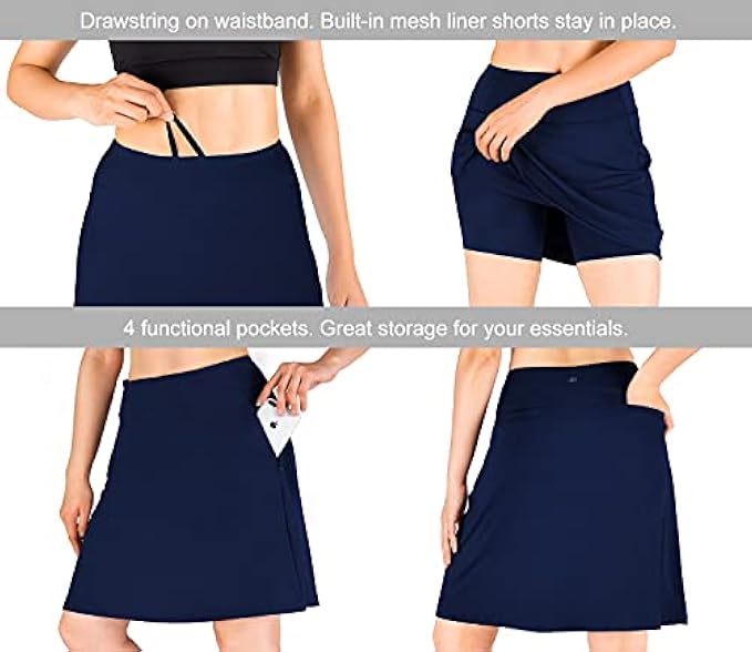 Yogipace Women's 4 Pockets UV Protection 20" Modest Knee Length Skirt Athletic Running Golf Tennis Skort Zippered Pockets