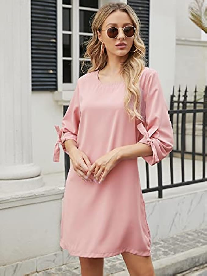 【Mini Dress Features】:YOINS Women Mini Dresses T Shirt Solid Crew Neck Tunics Self-tie Half Sleeves Blouse Dresses are crew neck/ round neck half short sleeve/long sleeve dresses with self-tie design loose fit tunic tops dresses for women, plain solid colour lace-up design mini dresses for women. The 【New】series mini dresses is more accommodating and the back is not easy to tear.