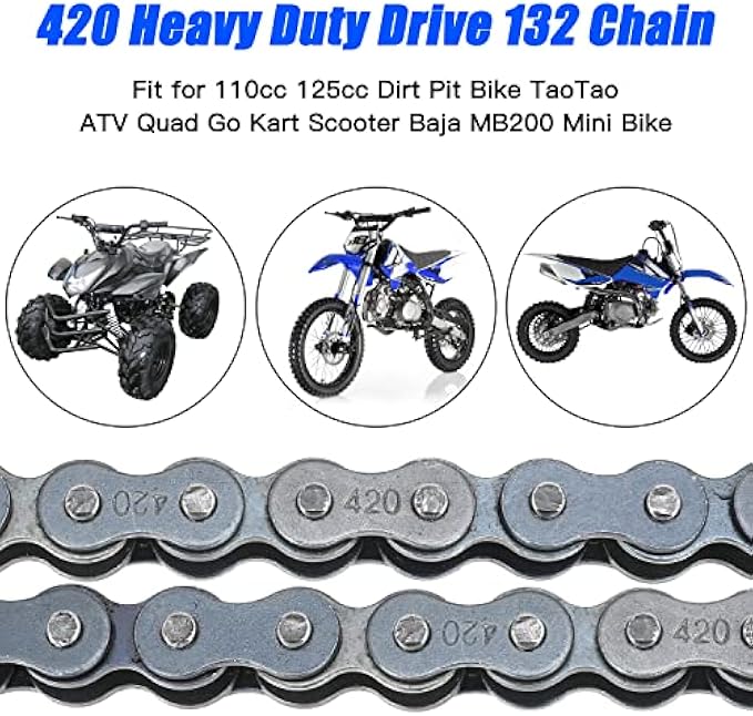 YOXUFA 420 Drive Roller Chain 132 Links for 50cc 70cc 90cc 110cc 125cc CRF50 XR50 SSR125 KLX TaoTao Coolster Baja Apollo Chinese Pit Dirt Bike ATV 4 Wheeler Quad Go Kart Scooter Mini Bike Snow Blower