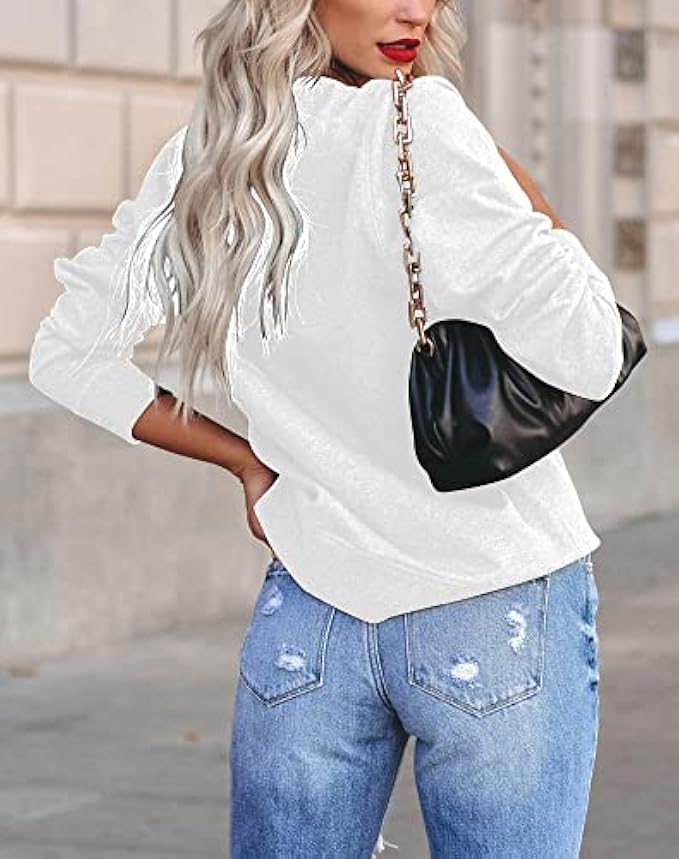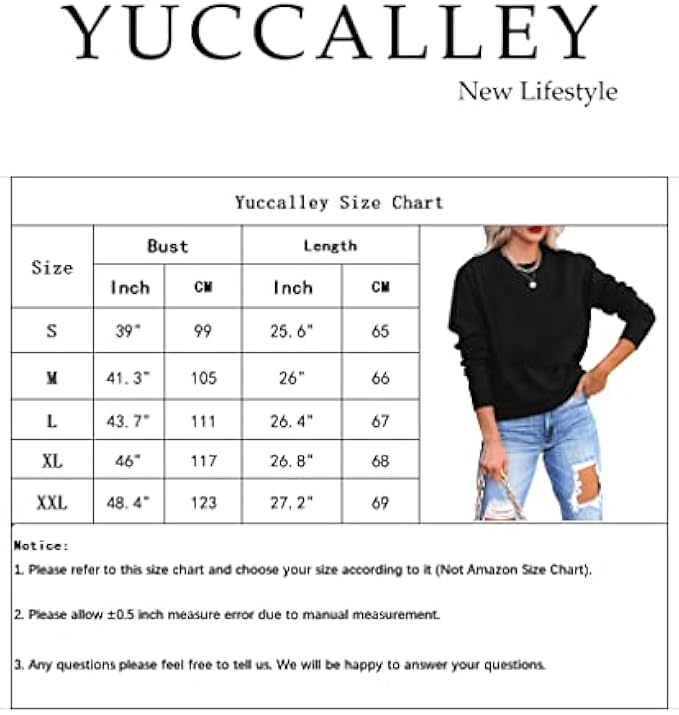 Yuccalley Women's Casual Long Sleeve Sweatshirt Fashion Crew Neck Pullover Basic Tops