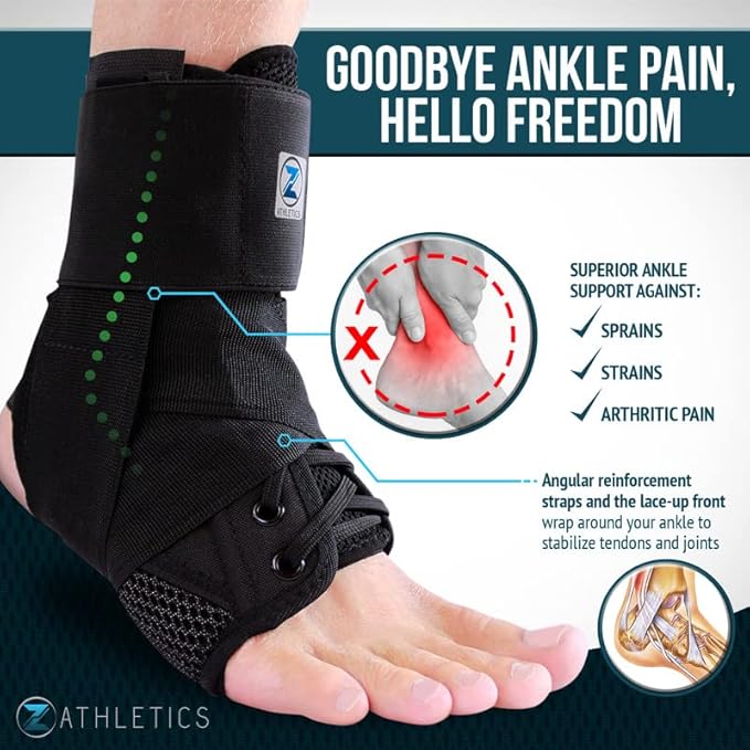 Z ATHLETICS Zenith Ankle Brace, Lace Up Adjustable Support – for Running, Basketball, Injury Recovery, Sprain! Ankle Support Wrap for Men, Women, and Children (Black, Medium)