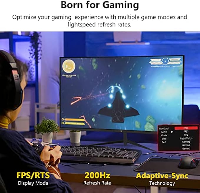 [Powerful and Strong Connections]Featuring with the two HDMI inputs and a Display port, you can connect multiple devices to the monitor. Display port supports up to impressive 200Hz refresh rate, while HDMI ports perform at up to 144Hz refresh rate, providing the pro-level gaming experience for the users.