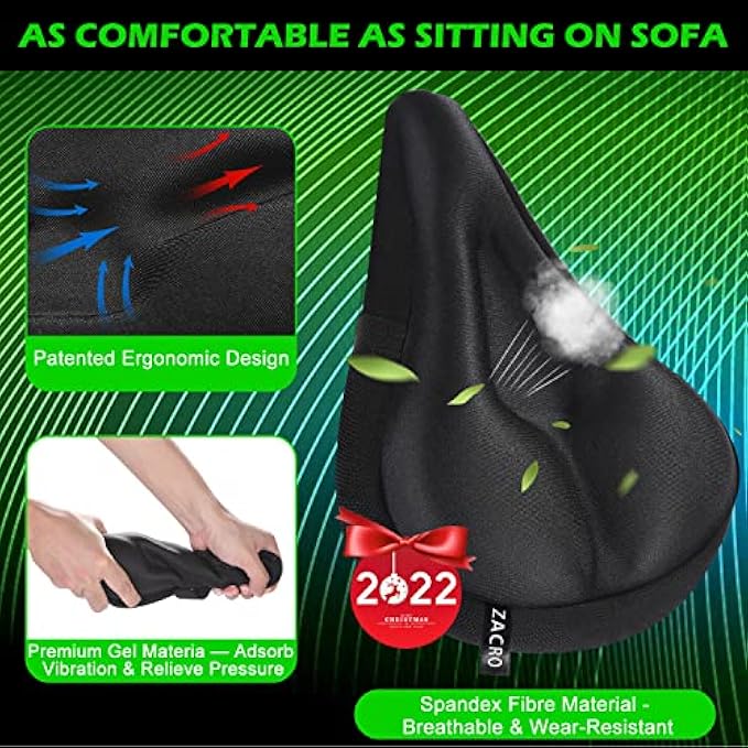 Zacro Bike Seat Cushion - Gel Padded Bike Seat Cover for Men Women Comfort, Extra Soft Exercise Bicycle Seat Compatible with Peloton, Outdoor & Indoor