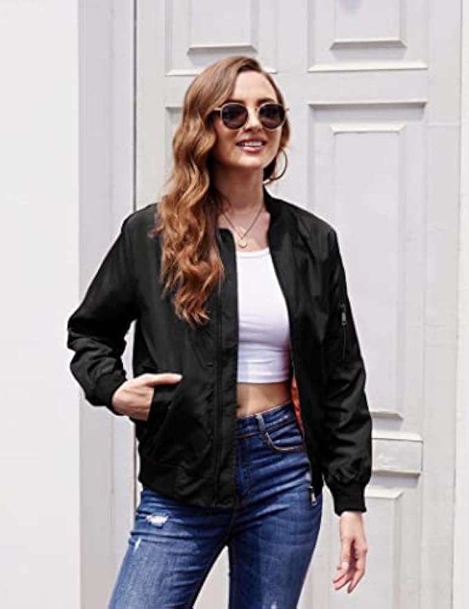 Zeagoo Womens Bomber Jacket Spring Casual Jackets Lightweight Zip Up Jacket Coat Windbreaker Outwear