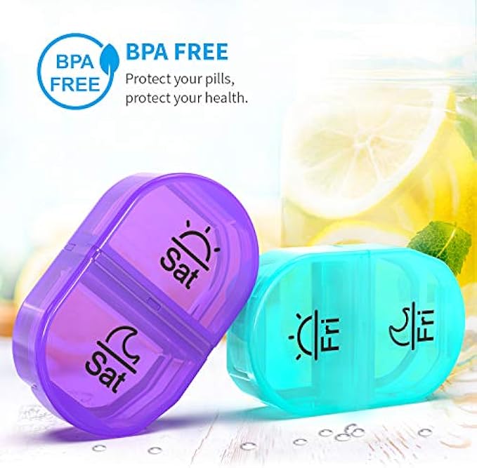 Dual Protection: The outer case of the day and night pill organizer is designed as a depressed semicircle, which increases the pressure-bearing to protect the morning and night pill organizer placed in suitcase. The lid of each medication organizer twice a day is tight enough to hold the pills, never worry about the pills may spill out accidently.